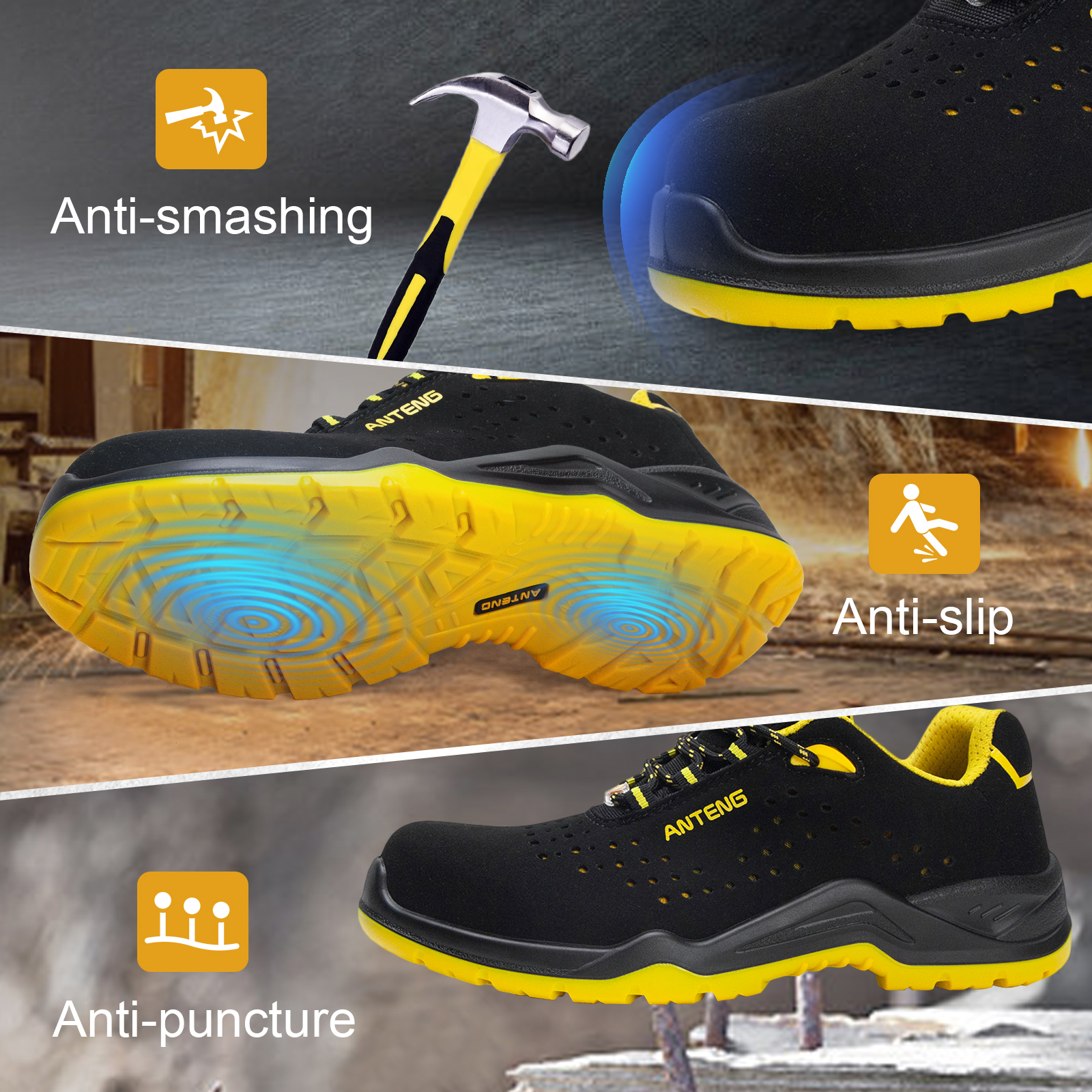 ANTENG Breathable And Sweat-wicking ESD Anti-Static Anti-smash Anti-Puncture Anti-Slip Multi-Functional Work Shoes Safety Shoes for Men Or Women