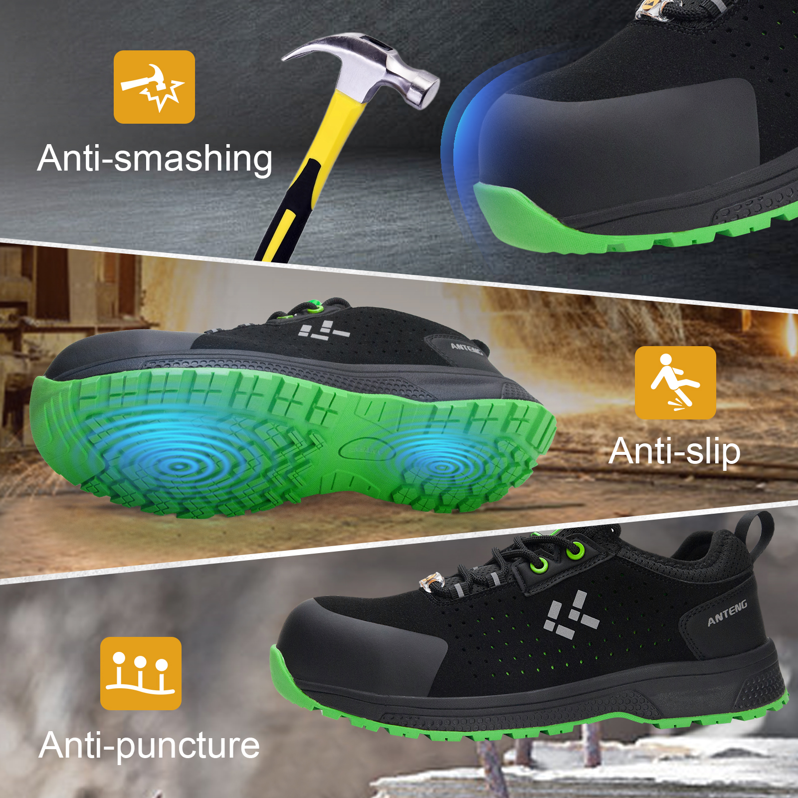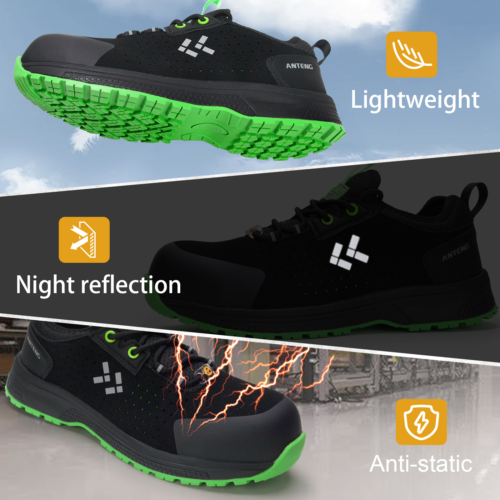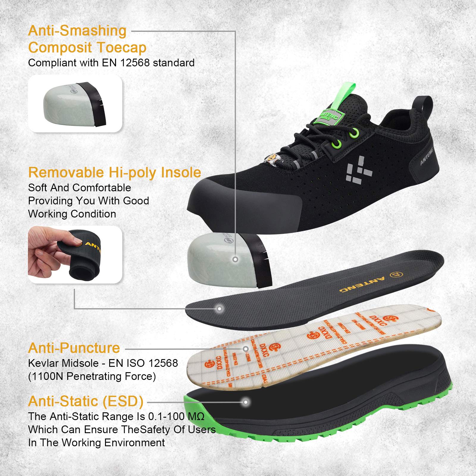 ANTENG Breathable And Sweat-wicking S1P ESD Anti-Static Anti-Slip Multi-Functional Work Shoes for Men Or Women