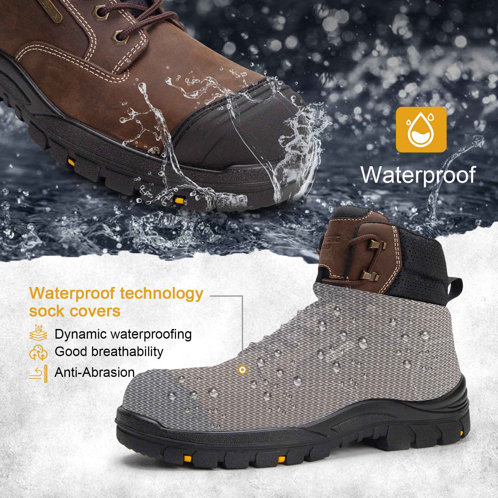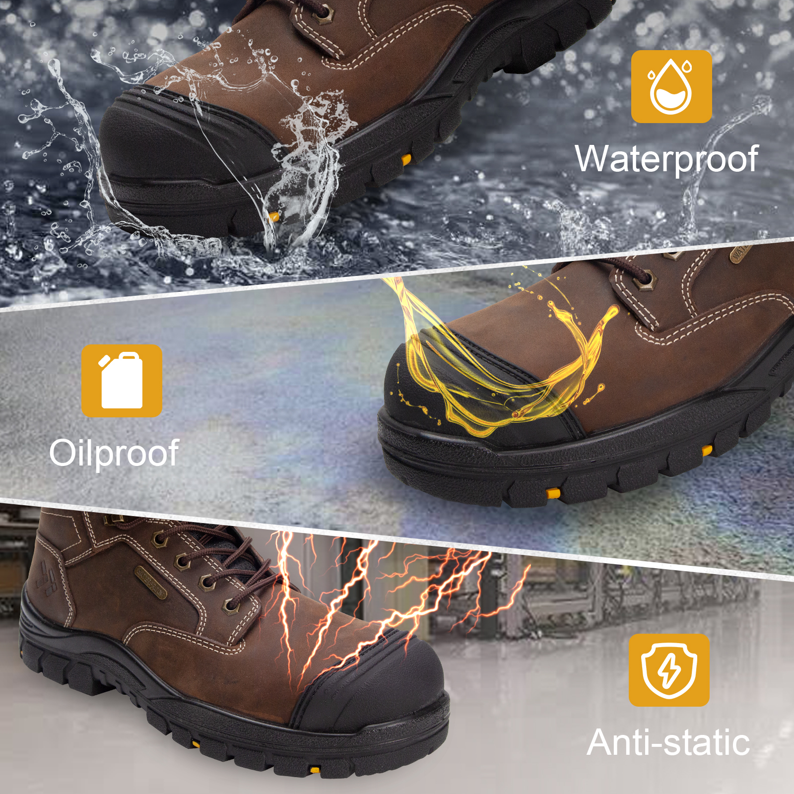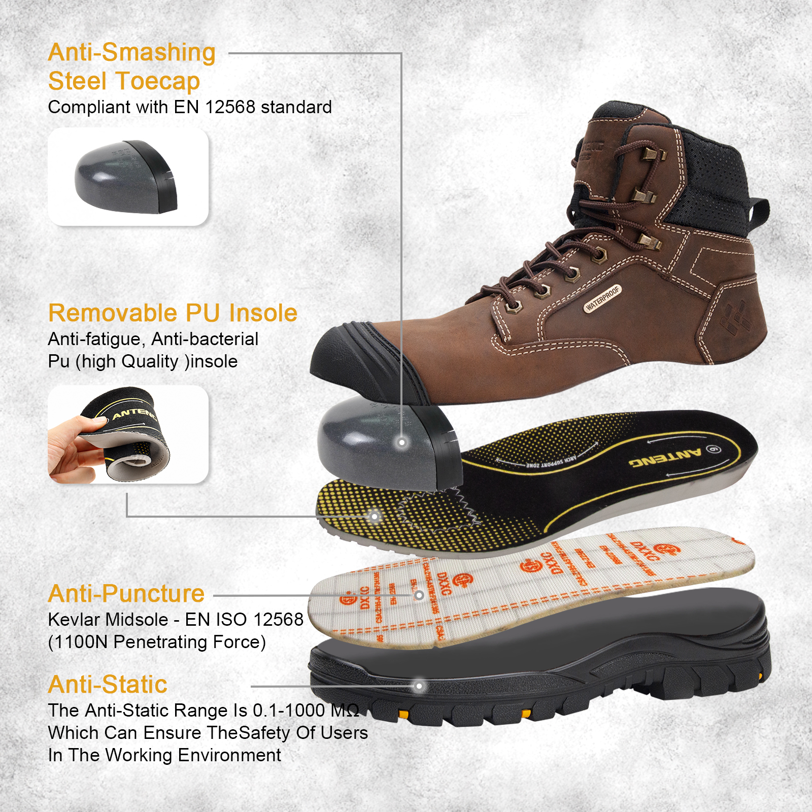 ANTENG Waterproof Work Boots Genuine Leather Upper Rubber Outsole S3 ESD for MEN