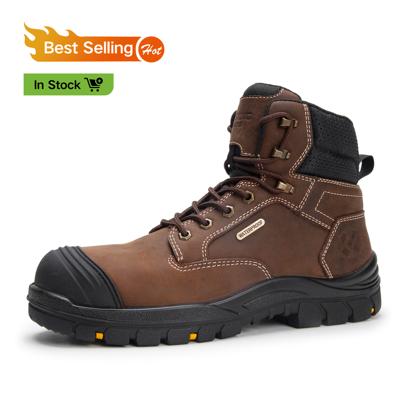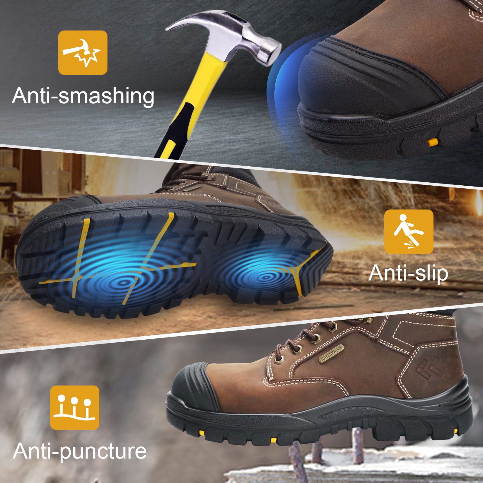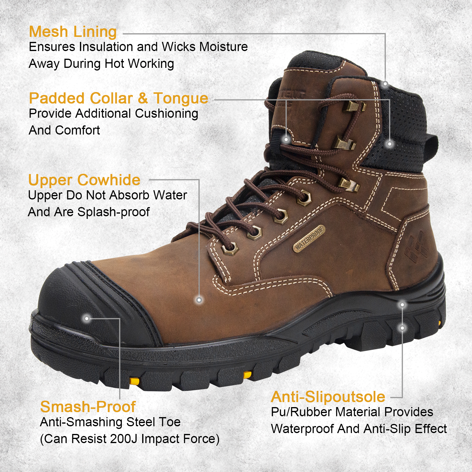ANTENG Waterproof Work Boots Genuine Leather Upper Rubber Outsole S3 ESD for MEN