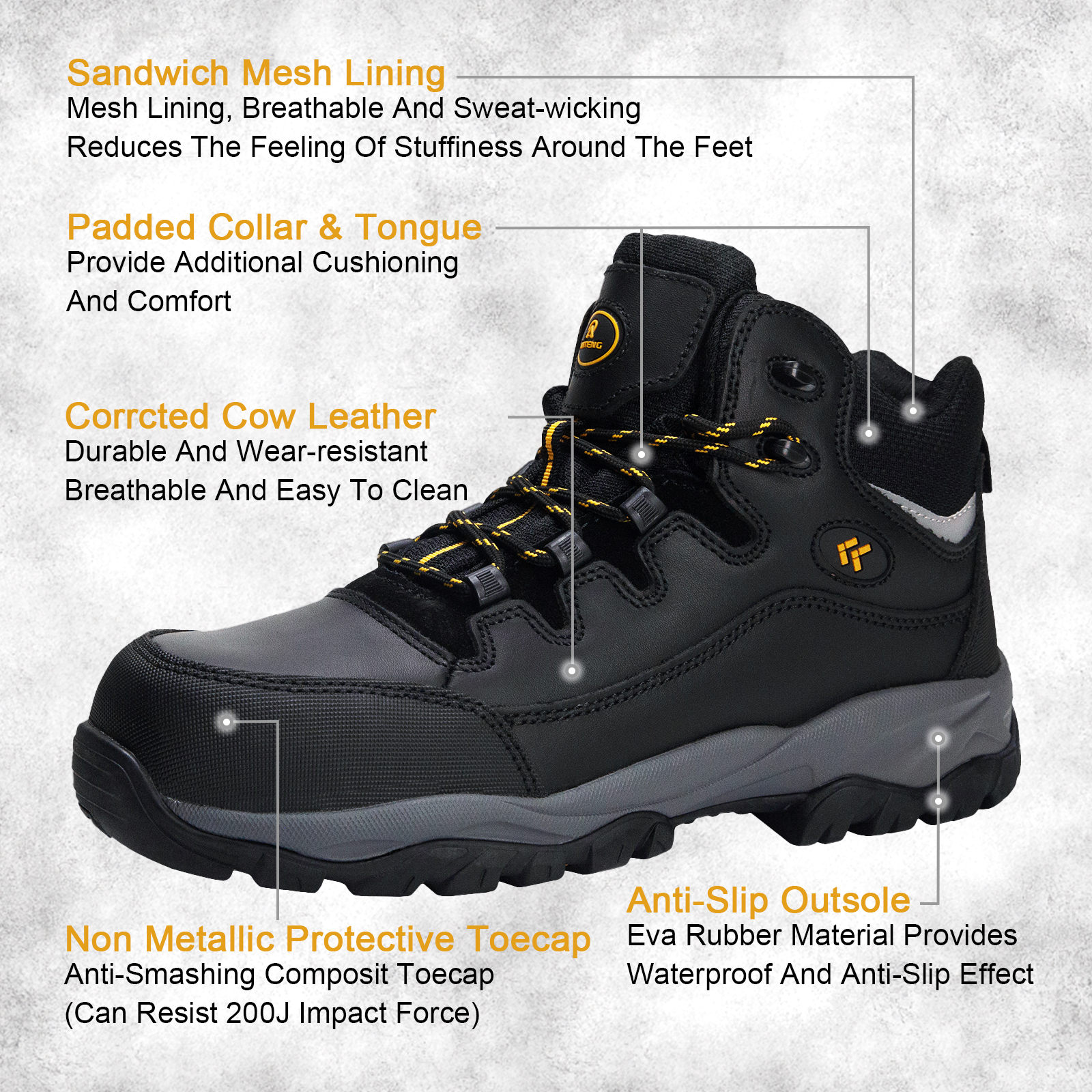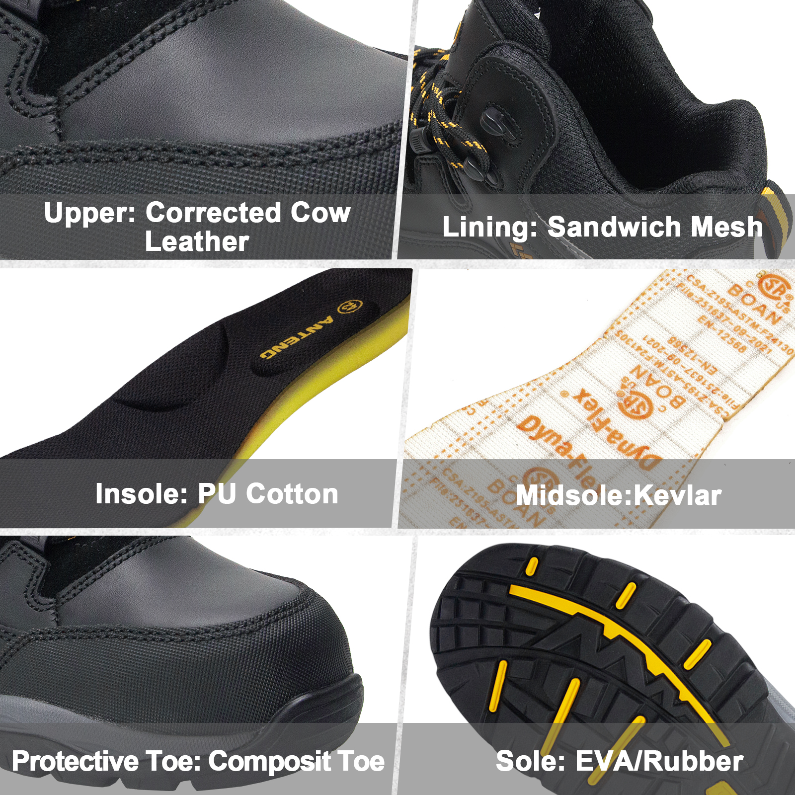 ANTENG Waterproof Work Boots S1P Genuine Leather Upper EVA Rubber Outsole Anti-static Anti-smash Anti-puncture for MEN &WOMEN